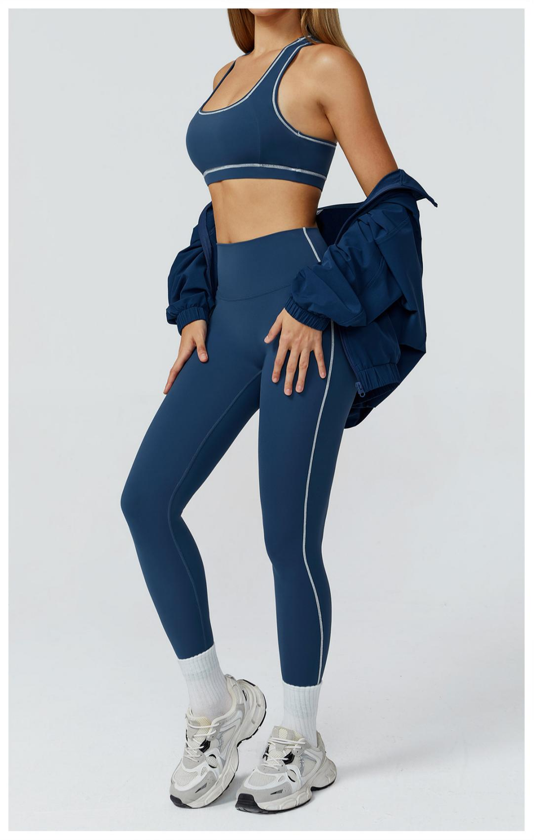 The Velocity Duo Set combines the Sculpt Bra and Contour Leggings for a perfect balance of support and sophistication. Designed for high-performance and sleek aesthetics — it’s your go-to for gym, errands, or coffee runs.